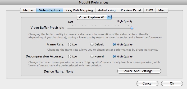 “Source And Settings”ボタンを押すと現在入力されている映像の確認と設定ができます。