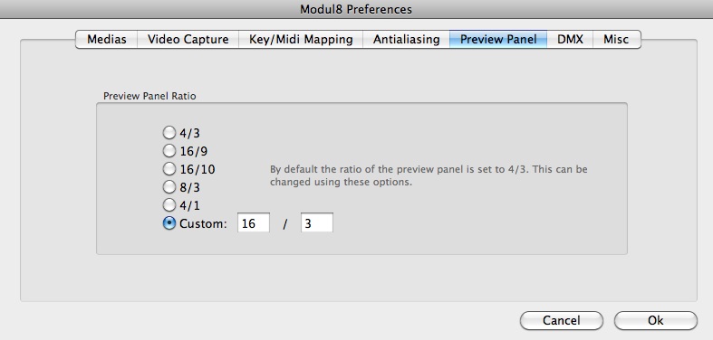 4.Preview Panelタブで映像出力のパネル比率を設定をします。