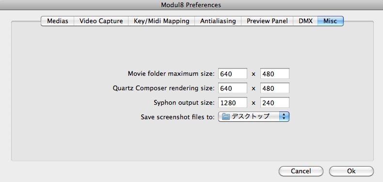 私の場合はSyphon経由でMadMapperに出力しますので”Syphon output size”を設定します。