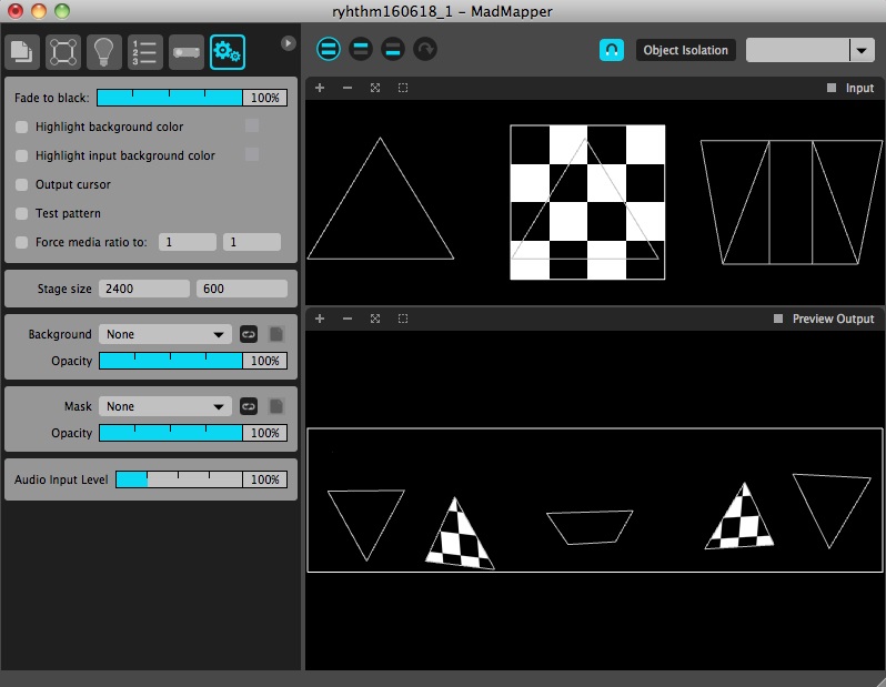 MadMapper上で作業するときの作業スペースを指定するのはこちらの画面。