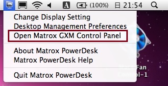 まず画面右上のTripleHeadのアイコンをクリックし、”Open Matrox GXM Control Panel”をクリックします。
