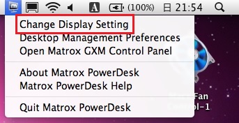 再起動したら画面右上のTripleHeadのアイコンをクリックし、”Change Display Setting”をクリックします。