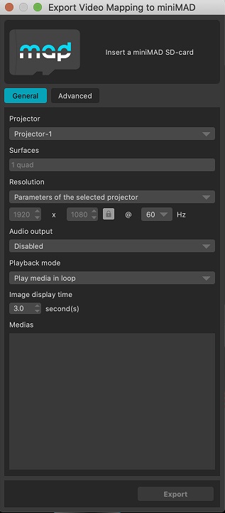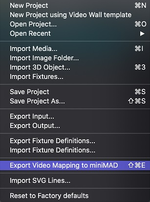 MadMapperからMiniMAD(1台)に出力する手順について解説します。