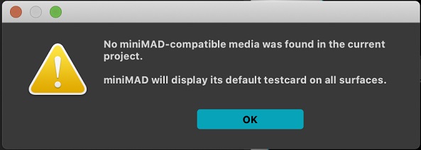 miniMADは、すべての表面にデフォルトのテストカードを表示します。