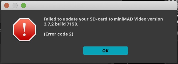 Failed to update your SD-card to miniMAD Video version 3.72 build 7150.