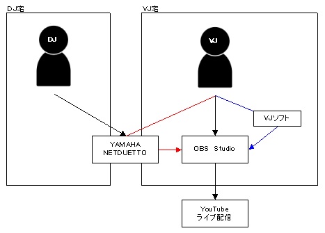 遠隔地にいるDJ,VJでリアルタイムに配信できないかなぁと考えていたら既に試している方がいたので挑戦してみました。