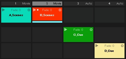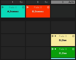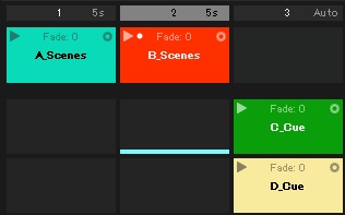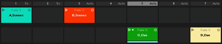 2つのScenesと2つのCueを作成し、配置を変更して再生順序を確認しました。
