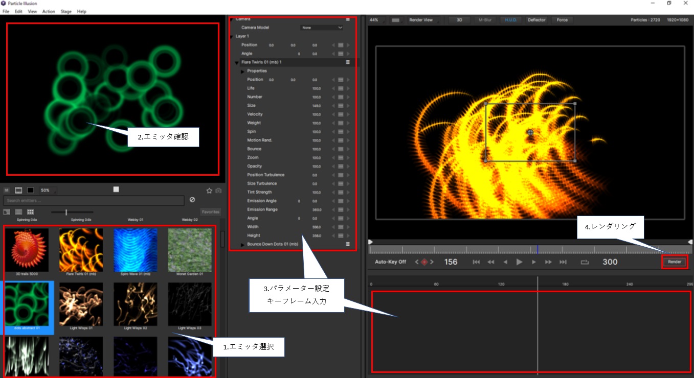 エミッタの選択~レンダリング