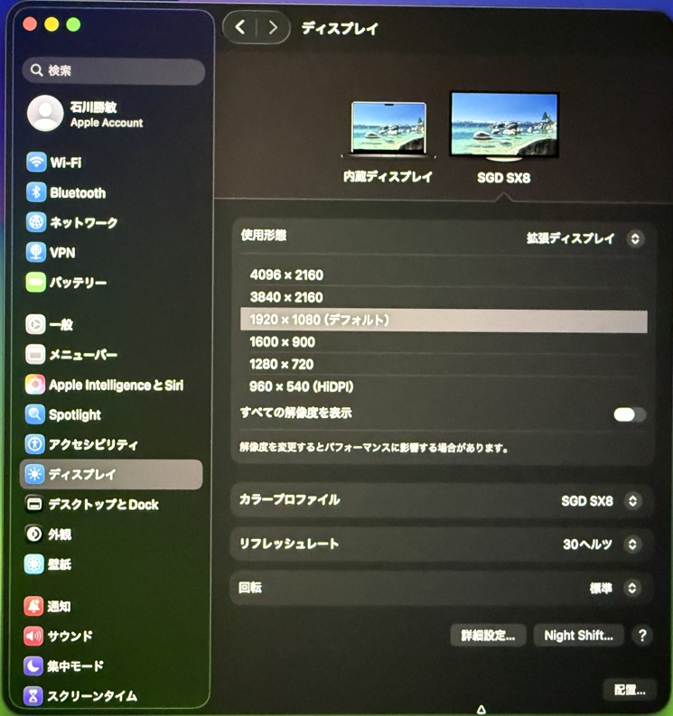 HDMIを挿するスクリーンの認識がされるのであとは設定を詰めるだけ。