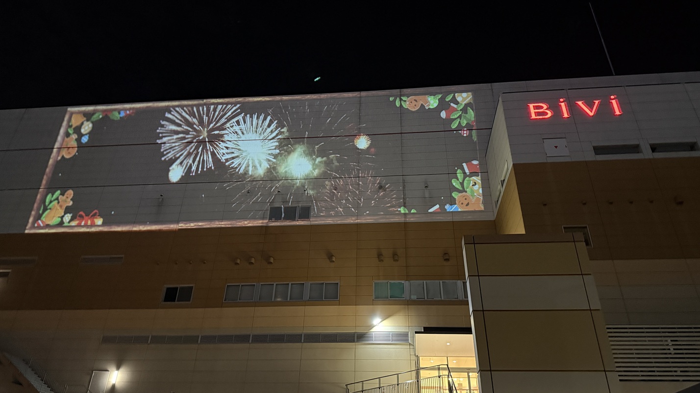 BiVi藤枝様の壁面にプロジェクションマッピングを投影しました。