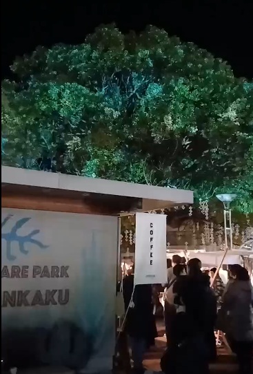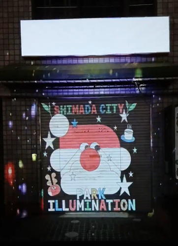島田駅前パークイルミネーション2025でサンカク公園のクスノキとビルに映像投影をしました。